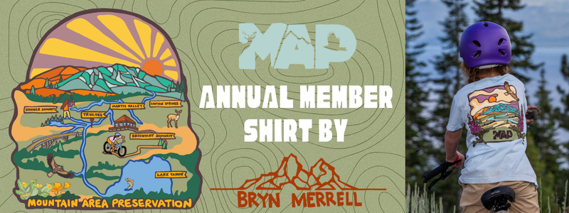 This was also MAPβs first year to implement an annual MAP Member shirt and sticker, in partnership with one of our favorite artists, Bryn Merrell, on a one-of-a-kind artwork piece that helps tell the story of MAPβs open space preservation efforts in Truckee Tahoe! There is still time to get your own shirt by making an end-of-year donation! (wink wink)