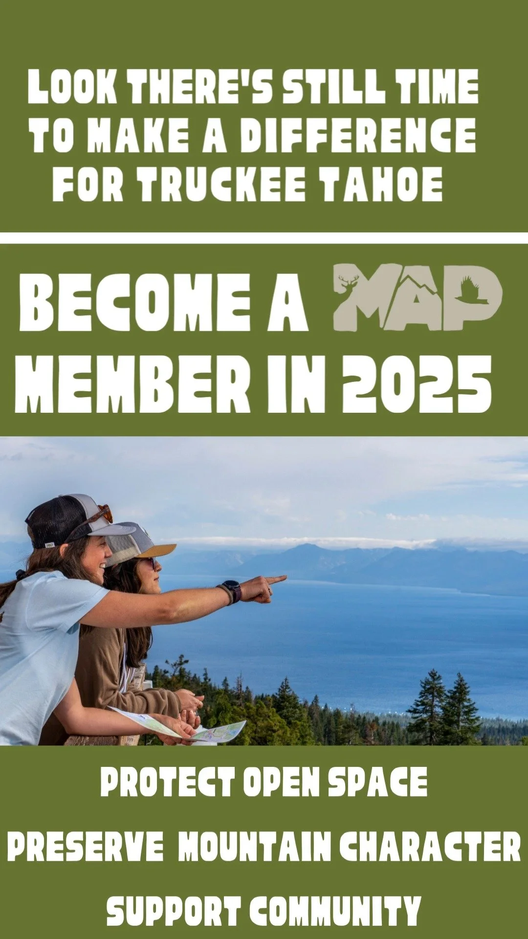 In 2011, MAP helped support the sale of McGlashan Springs, 160 acres of land adjacent to Tahoe Donner, owned by the Truckee Donner Public Utility District, which was sold to the Tahoe Donner Association for conservation, in an effort to preserve the springs, which was the original water source for the community of Truckee. The conservation easement is required to preserve the propertyβs spring water, riparian zones, cedar grove, and charcoal kilns. The McGlashan Spring property is an important part of Truckeeβs community history, which should be preserved for future generations.