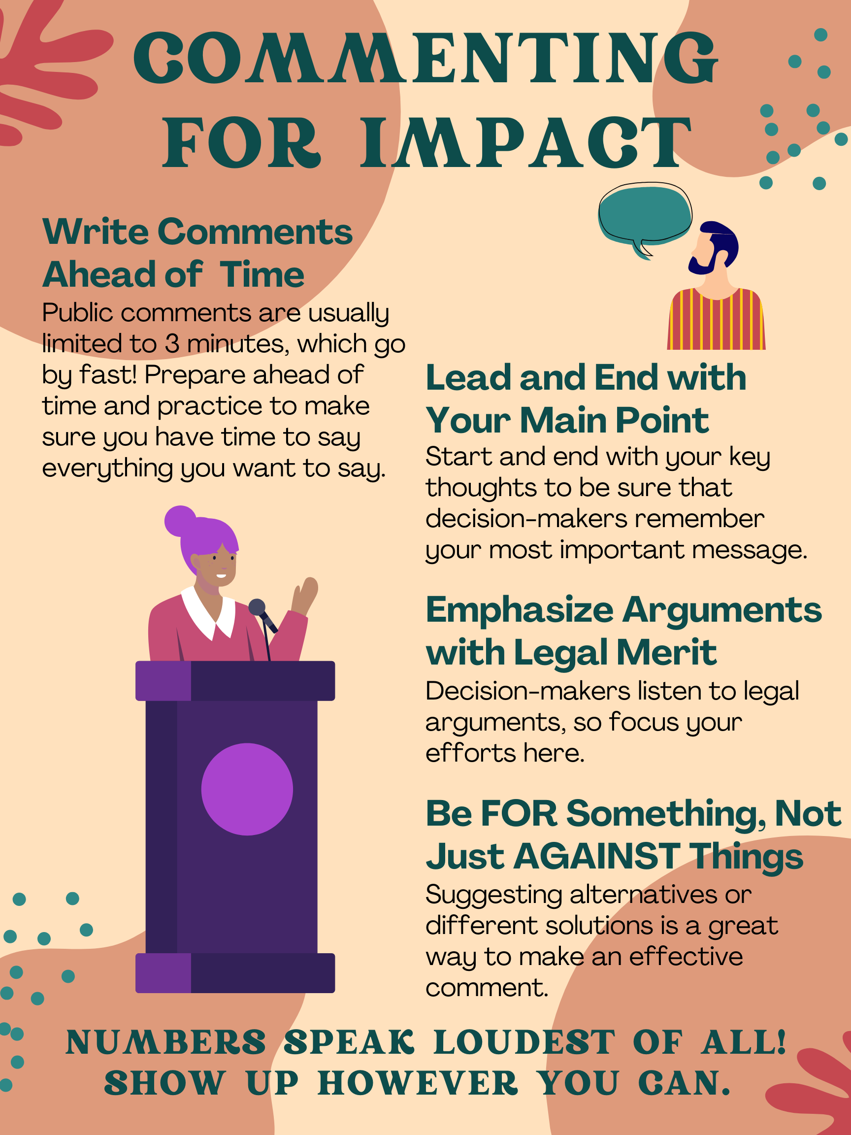 We get it. Land use planning and attending public hearings is intimidating. The resources below are intended to make the process a little less scary. Learn different strategies to get engaged, why it’s important, and how to participate effectively in the public process.